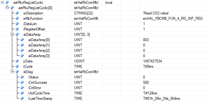 Beispiel eines zyklischen RTU-Registers im AS-Watch